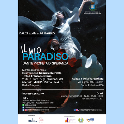 Dal 27 aprile al 9 maggio 2026, la Biblioteca Civica “G. G. Bronziero” di Badia Polesine ospiterà la mostra “Il mio Paradiso. Dante profeta di speranza”, allestita al primo piano del chiostro dell’Abbazia della Vangadizza.