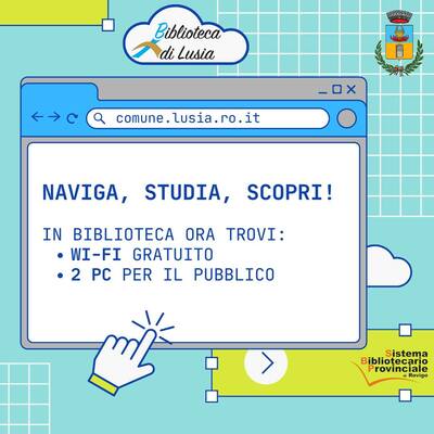 La Biblioteca Comunale di Lusia offre Wi-Fi gratuito e 2 postazioni PC per il pubblico. Un servizio pensato per studenti, lettori e cittadini di tutte le età!