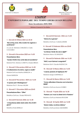 Calendario completo dell'Università Popolare di San Bellino - 2025/2026