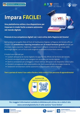 Per maggiori informazioni contatta la biblioteca più vicina a te o visita il sito www.venetodigitalefacile.it nella sezione "Corsi Online"