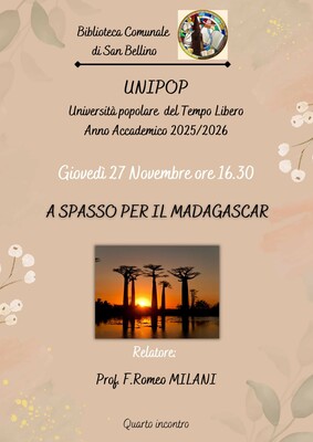 GIOVEDI' 27 novembre 2025 - quarta lezione dell'Università Popolare di San Bellino
