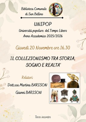 GIOVEDI' 20 novembre 2025 - terza lezione dell'Università Popolare di San Bellino